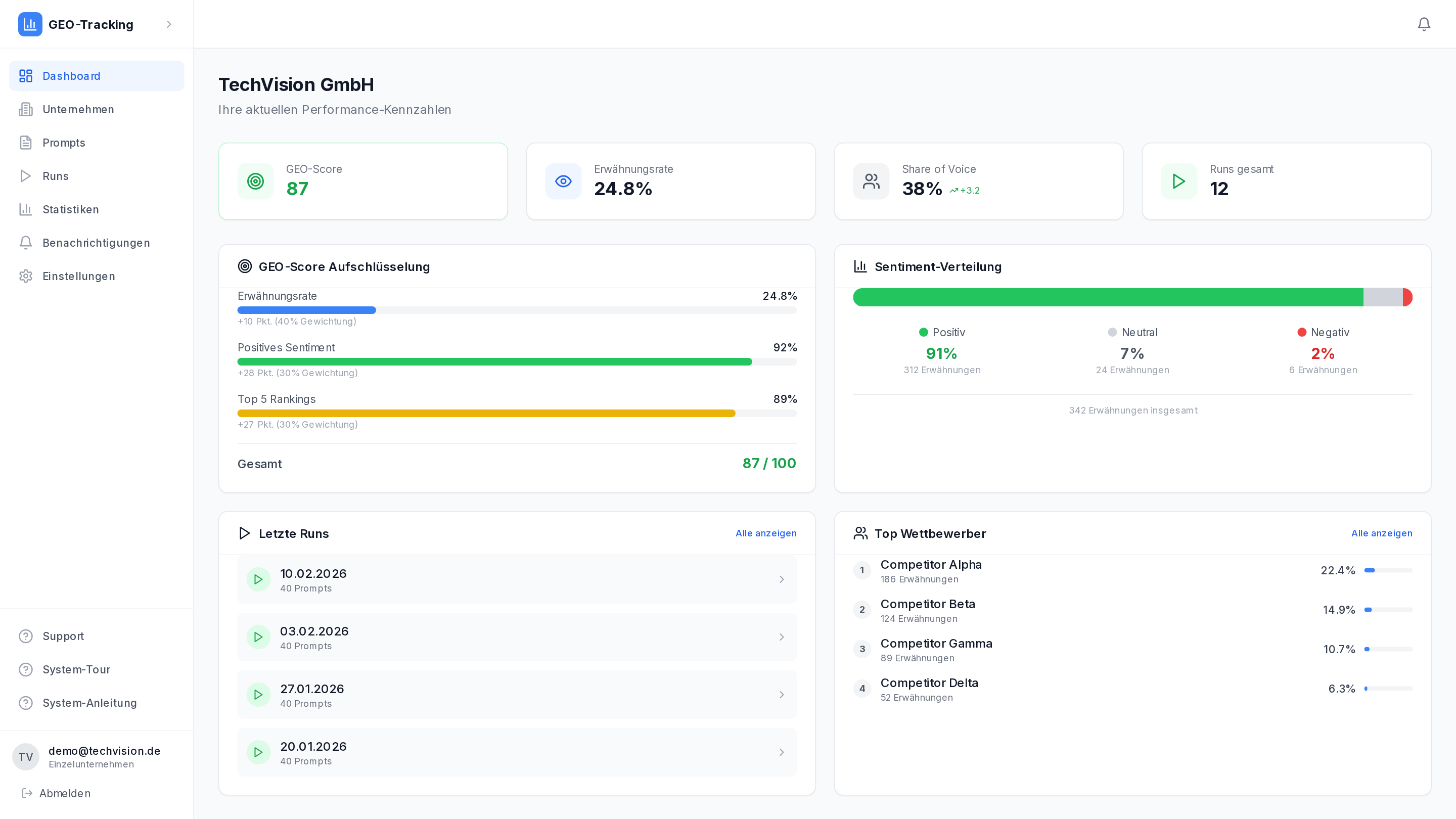 "Das Competitor Benchmarking ist Gold wert. Wir sehen genau, wo wir im Vergleich zum Wettbewerb stehen und können gezielt reagieren."